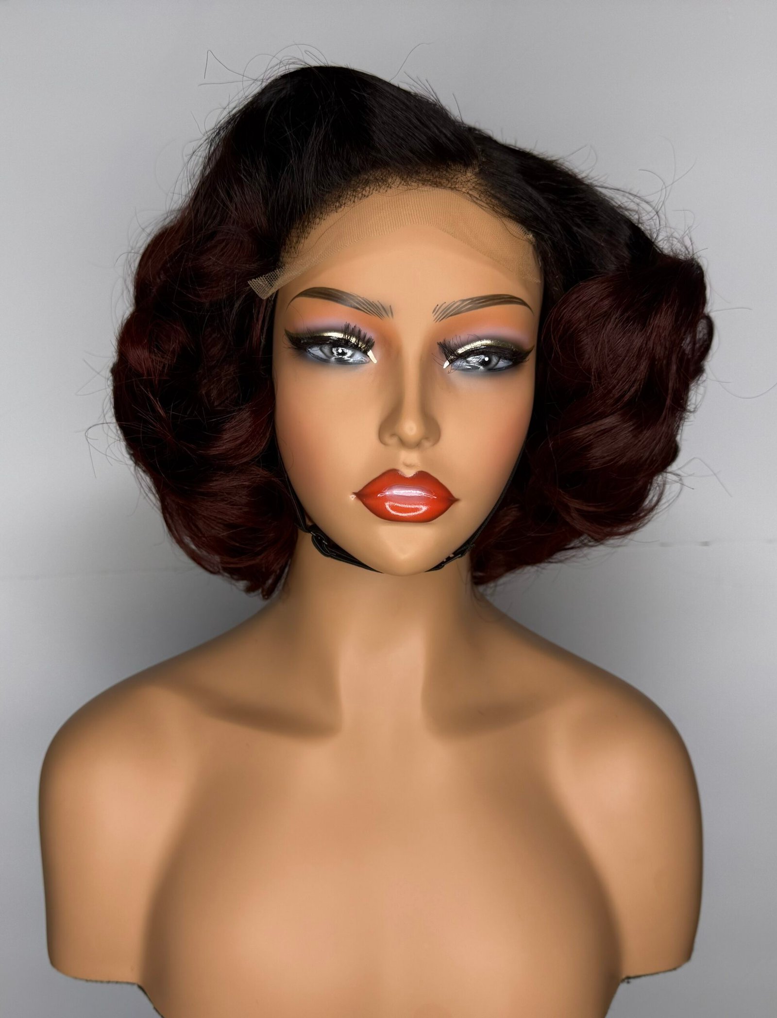 This 5×5 HD Lace Loose Wave 12-inch Wig in the shade TB/99J delivers a soft, luxurious look with a beautifully blended pop of color.