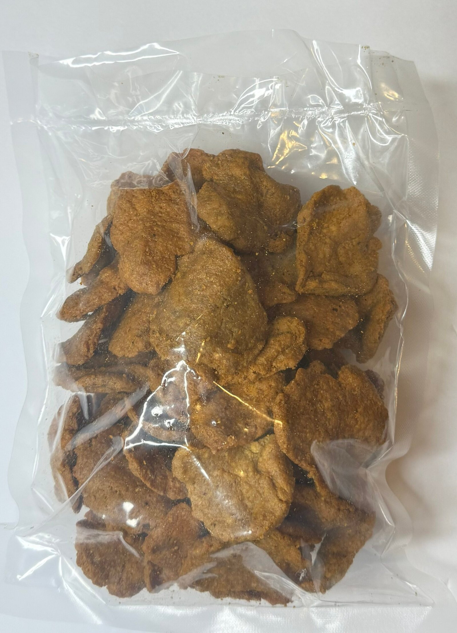 Kulikuli is a traditional West African snack made from groundnuts (peanuts) that have been roasted, ground into a paste, and then fried until crispy. It has a crunchy texture and a rich, nutty flavor with a slightly salty taste. Kulikuli is often shaped into small sticks, rings, or flat pieces and is commonly enjoyed as a snack on its own or paired with foods like garri, pap, or salads. It is popular in countries like Nigeria and Ghana and is valued for its high protein content and long shelf life, making it both a tasty and convenient treat.