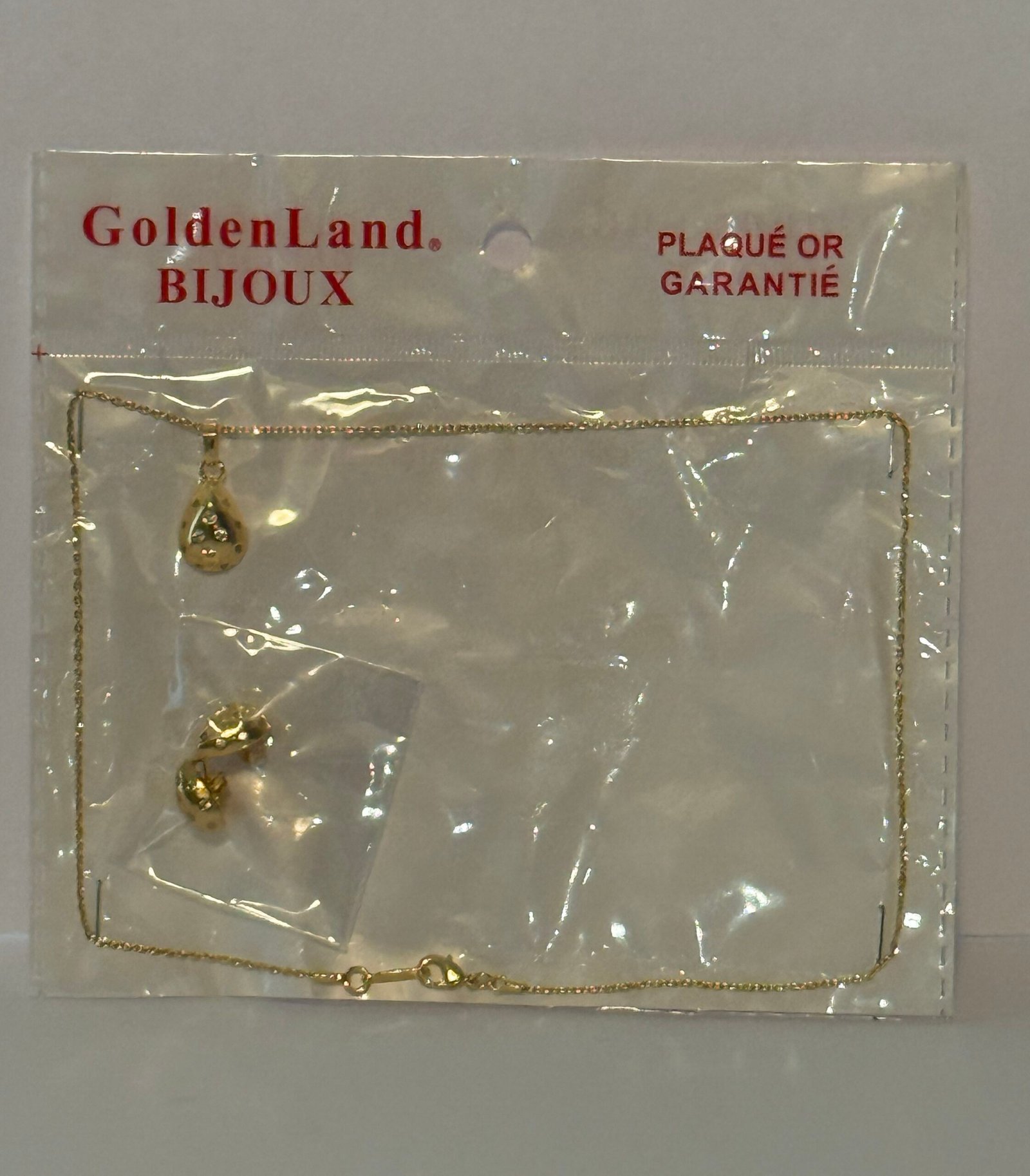 The necklace is lightweight with a fine chain and a small pendant that adds a subtle touch of shine, while the matching earrings complement the design for a coordinated finish. the set offers a stylish and affordable option suitable for everyday wear or adding a refined touch to special occasions.